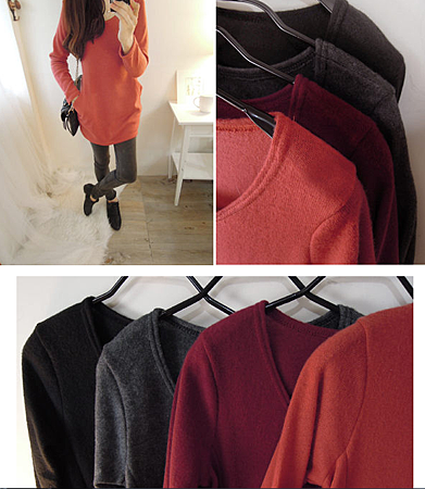 miss cherry 【A109166】超好穿好搭刷毛暖素面口袋長T 4色