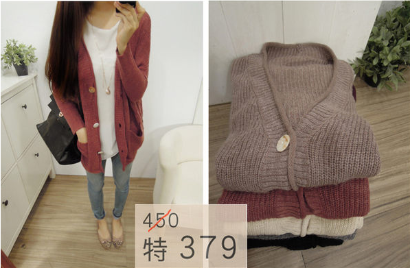 miss cherry 【C281831】秋冬必備大貝殼扣雙口袋粗針織外套5色