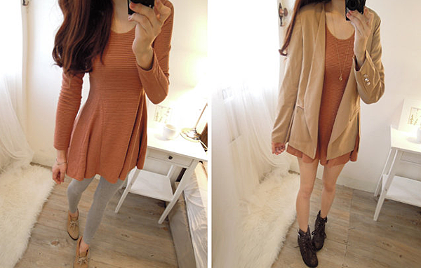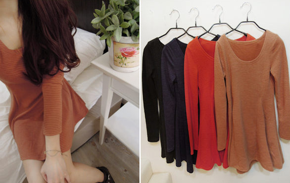 miss cherry 【A89222】超好搭彈性舒服好穿坑條紋圓裙洋 4色